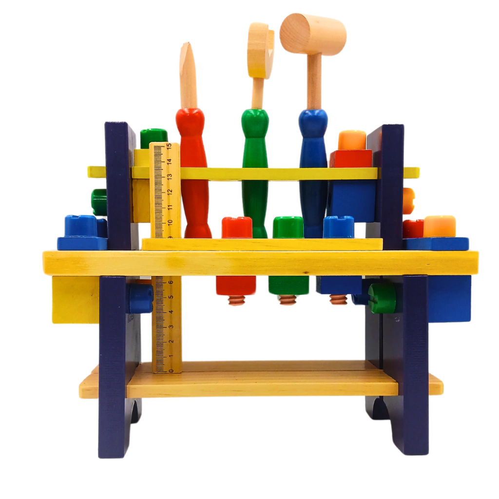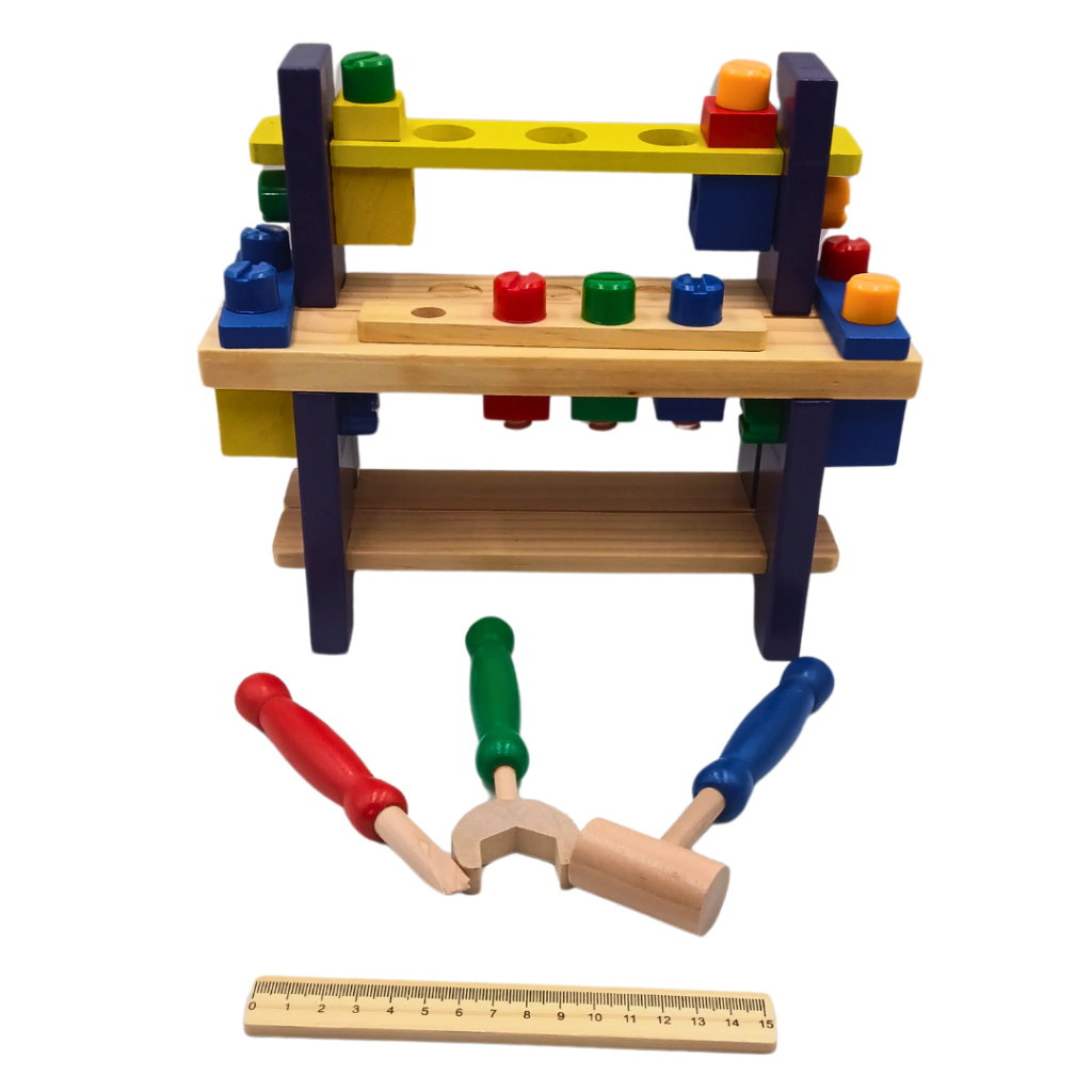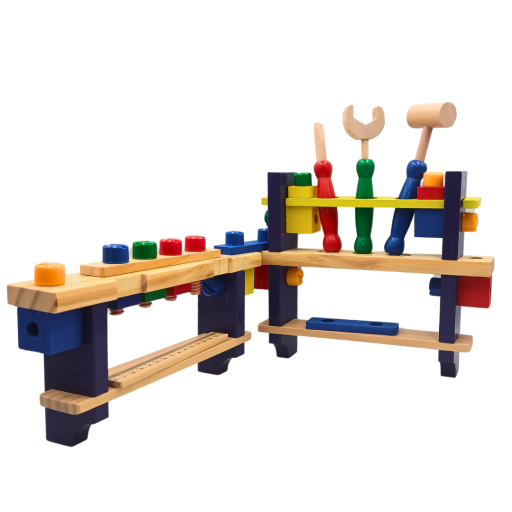 Com ferramentas feitas em madeira e peças coloridas e resistentes, esse brinquedo incentiva o desenvolvimento da coordenação motora fina, da força manual e da percepção espacial. Ao apertar, girar e montar as peças, os pequenos exploram a lógica, o raciocínio e a solução de problemas de forma divertida. Além disso, por permitir a simulação de atividades do dia a dia dos adultos, a bancada contribui para o desenvolvimento do faz de conta, promovendo a criatividade e o pensamento simbólico — fundamentos essenciais para o crescimento emocional e cognitivo.