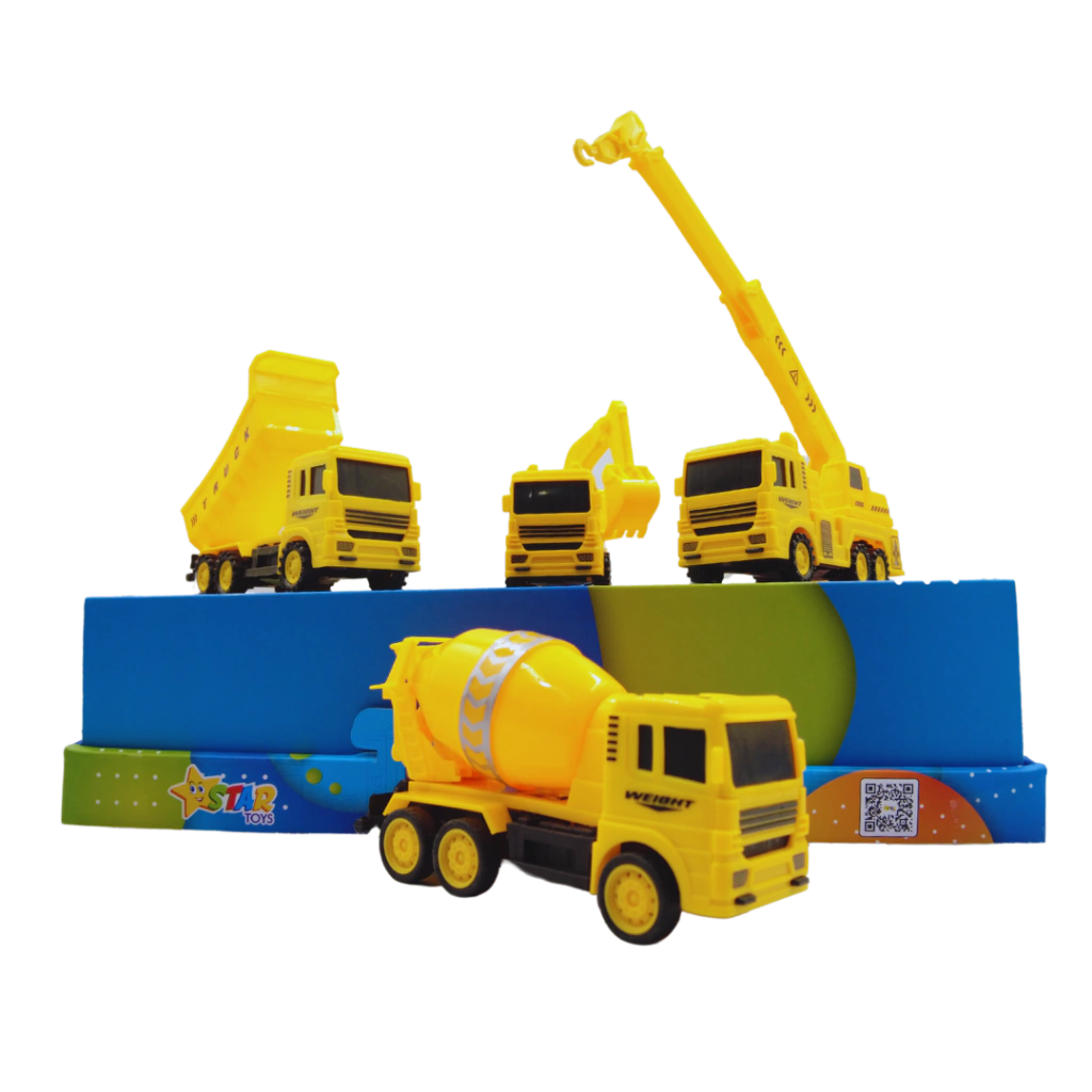 O Kit Construtor da Star Toys é ideal para pequenos engenheiros que adoram explorar o mundo da construção! Este conjunto incrível conta com 4 caminhões de construção em miniatura, cada um equipado com sistema de pull back para acelerar nas obras. A diversão começa quando as crianças puxam os caminhões para trás e os soltam, criando cenários de construção emocionantes. Com modelos variados, incluindo betoneira, caminhão basculante, guindaste e escavadeira, o kit estimula a criatividade, o raciocínio lógico e o desenvolvimento de habilidades motoras. As crianças podem recriar canteiros de obras e simular grandes projetos, explorando o universo da engenharia de maneira divertida e segura. Feito com materiais de alta qualidade e detalhes realistas, o Kit Construtor transforma qualquer lugar em um verdadeiro canteiro de obras!