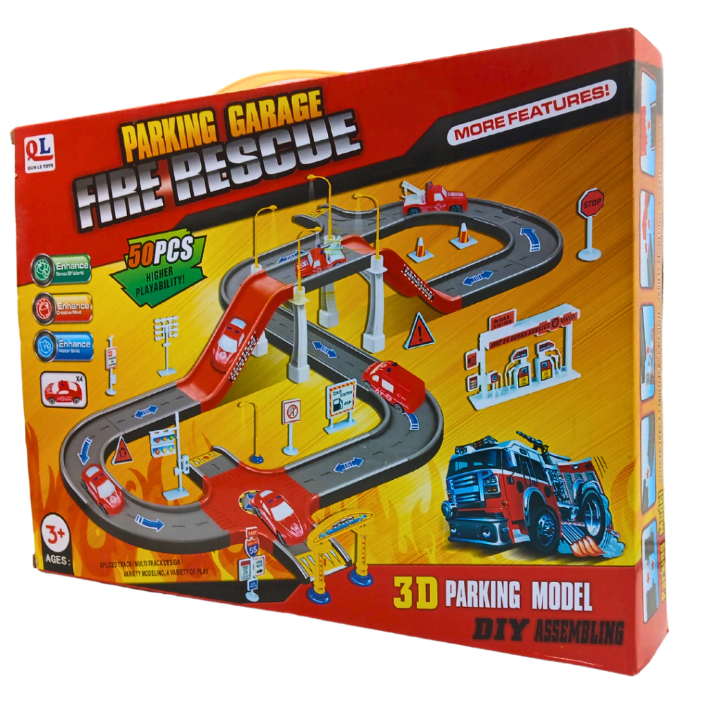 Com o Fire Rescue da Star Toys, a criança se transforma em herói do dia! Esse estacionamento temático com 50 peças inclui rampas, placas de sinalização, bombas de gasolina e 4 carrinhos de resgate, promovendo o faz de conta com adrenalina e criatividade.